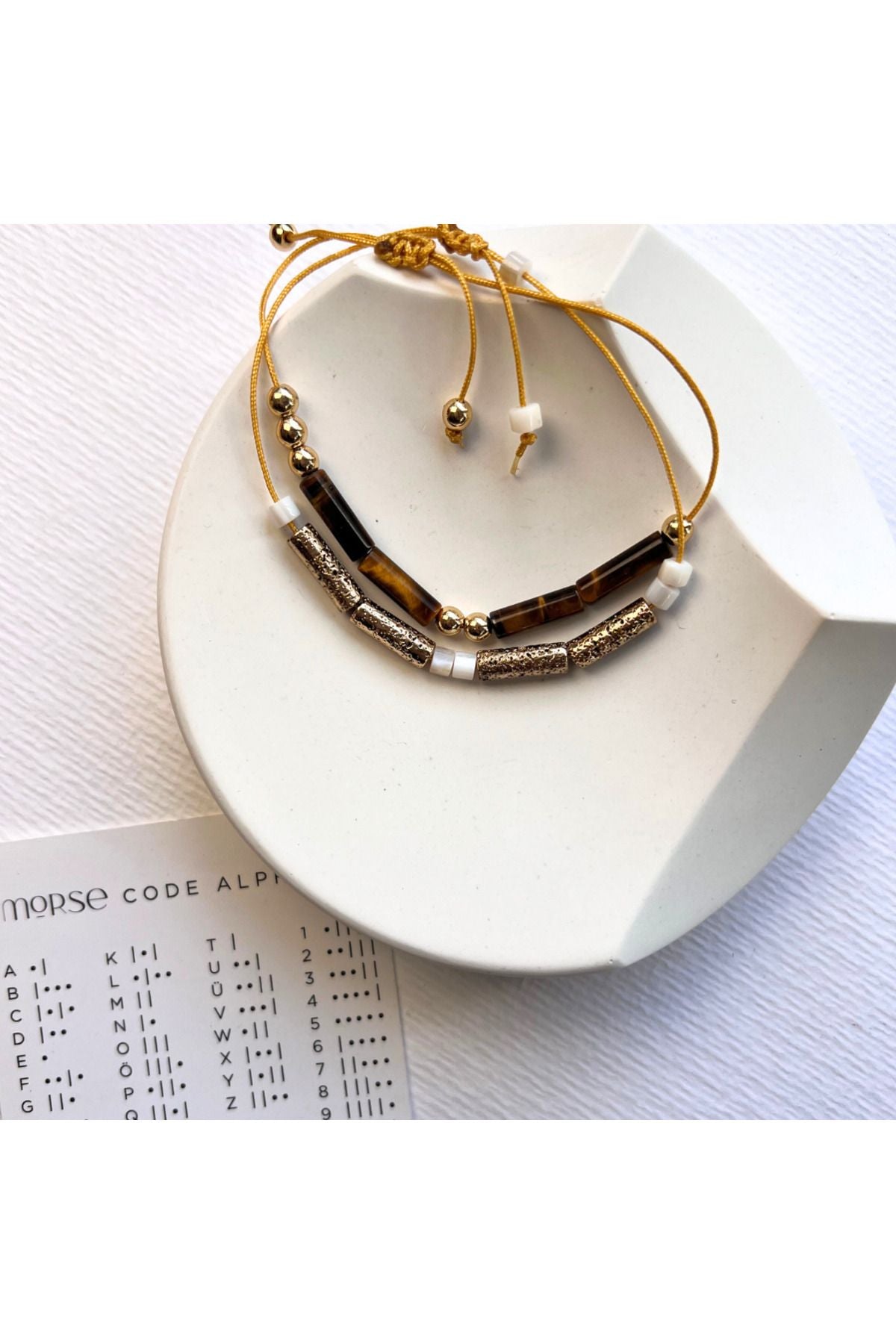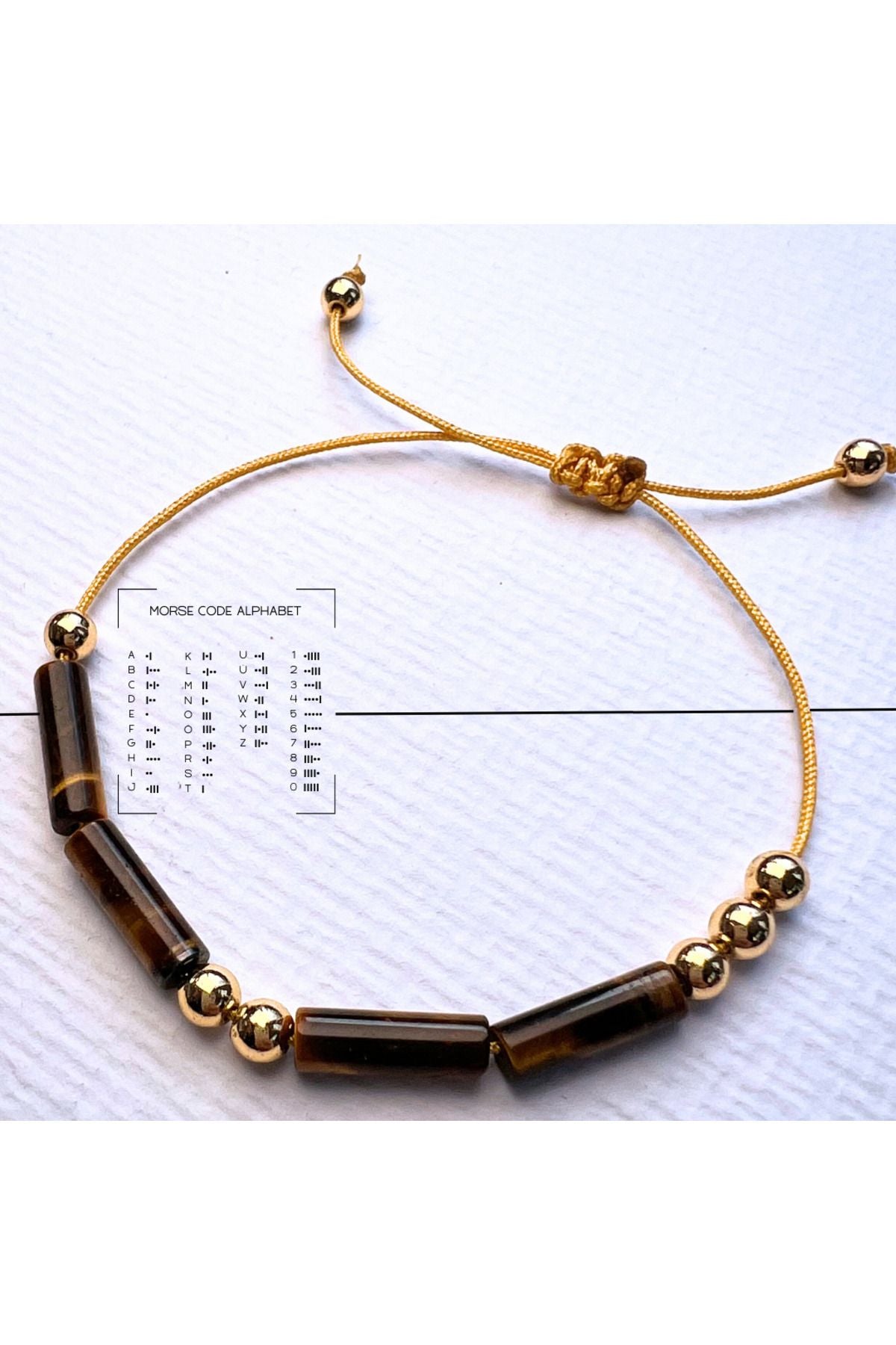 Amour Codé Doğal Kaplan Gözü ve Hematit Taşlı Kişiselleştirilebilir Mors Alfabesi Bileklik