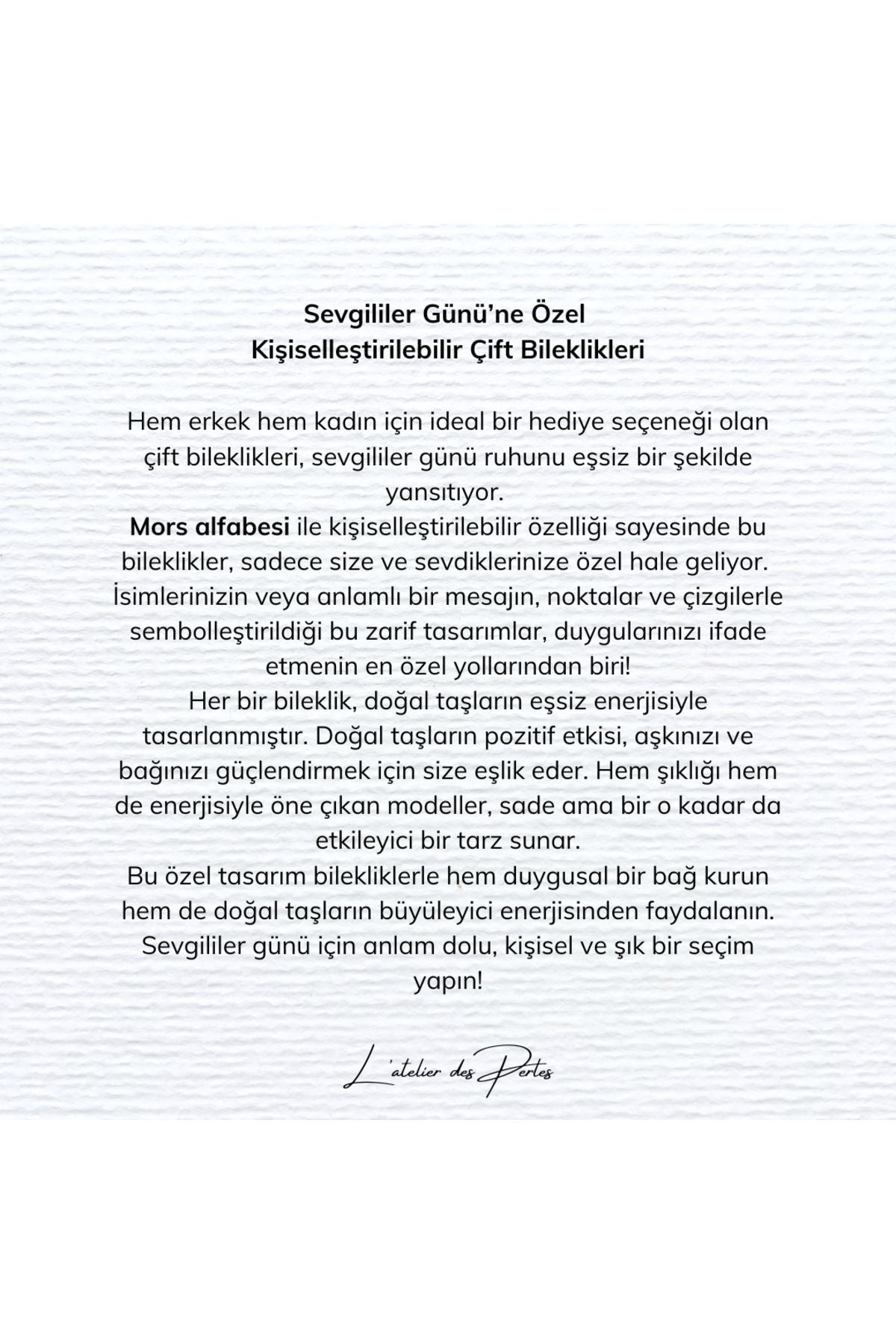 - Bakım Önerisi ; Doğal taşlar ve altın kaplama parçaların kullanıldığı tasarımlarımızda, parfüm, krem ve alkol gibi ürünlerin doğrudan temasından kaçınmanızı tavsiye ederiz.Bu tür ürünler, doğal taşların ve kaplamaların yapısını etkileyebilir ve uzun süreli kullanımda zarar verebilir.Ürünlerimizin uzun ömürlü ve sağlam kalması için, bu tür maddelerden uzak tutmanız önemlidir .