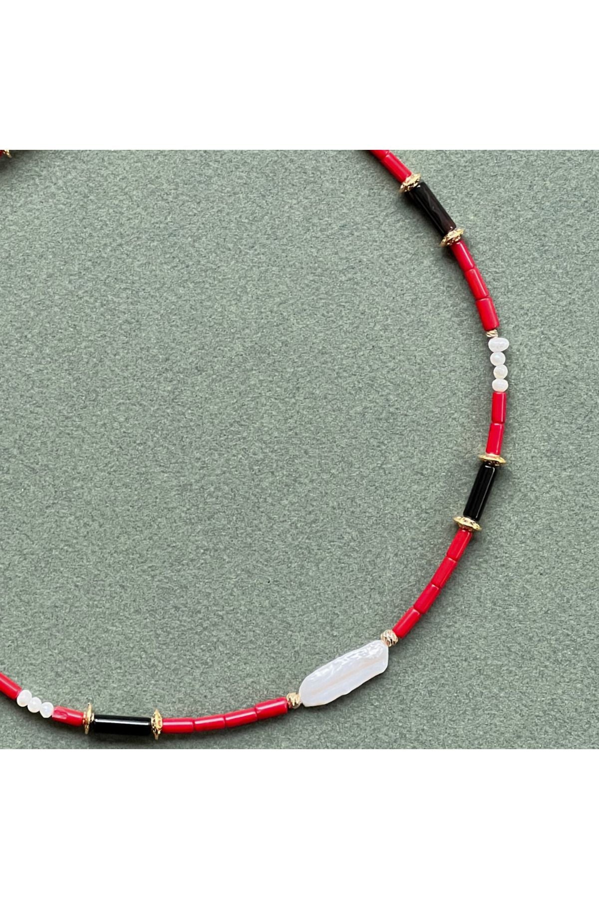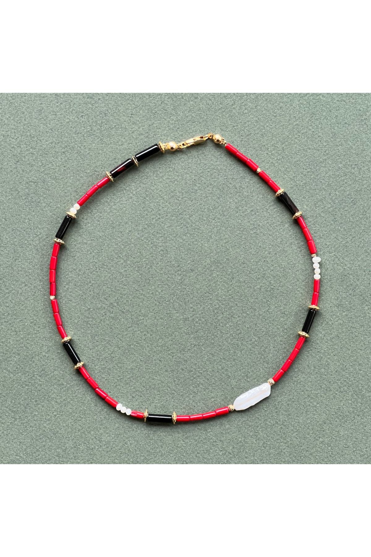 Amour Doğal Mercan Taşlı ve Barok İncili Kolye