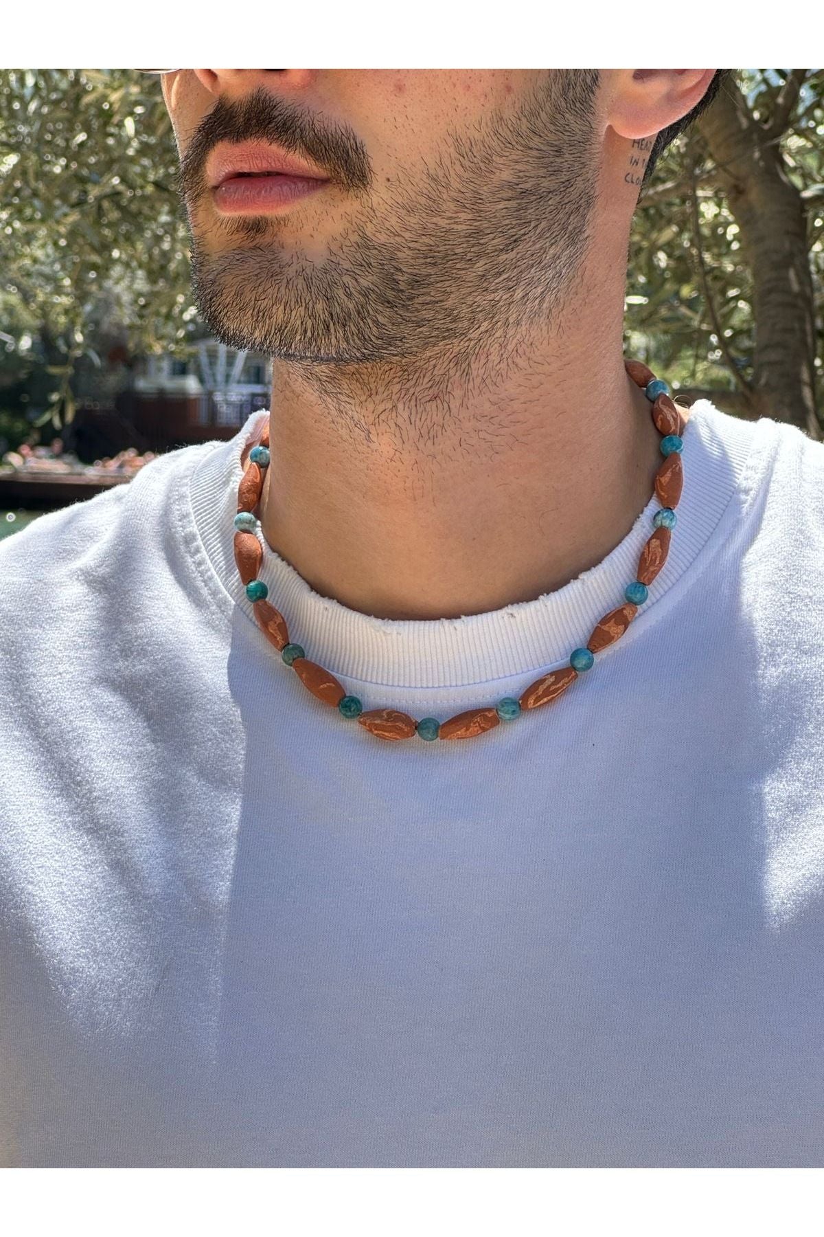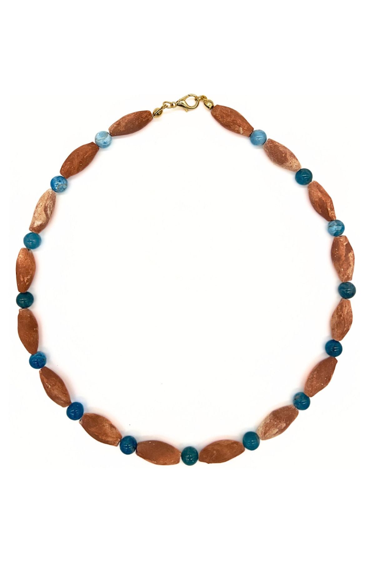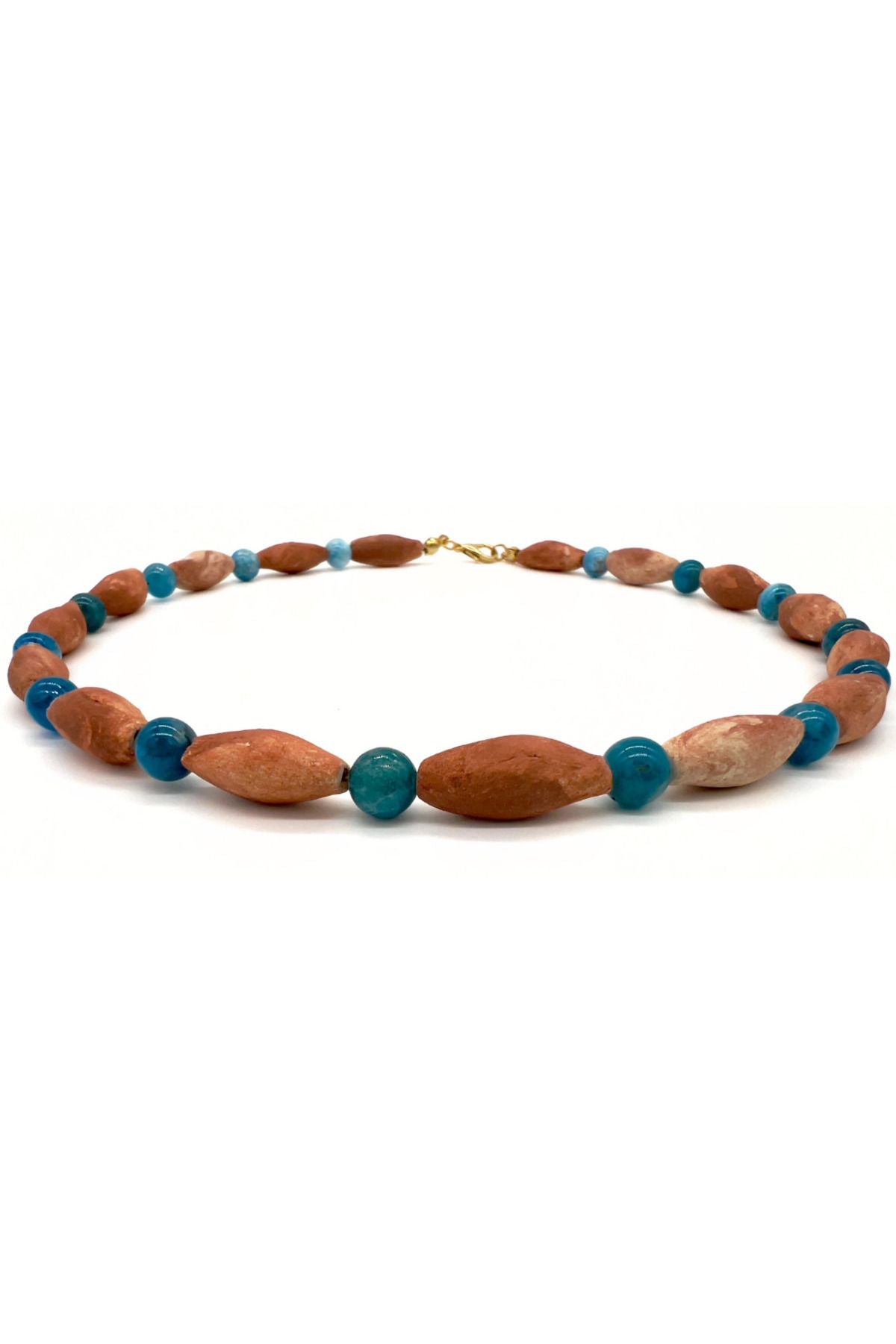 Antibes Doğal Apatit Taşlı ve Toprak Boncuklu Kolye