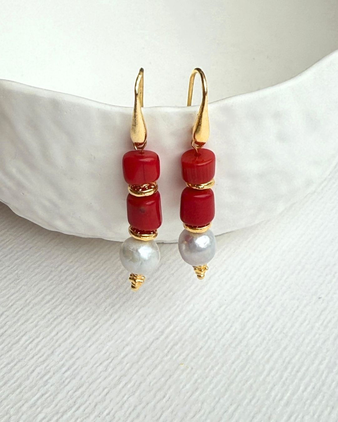 Bloom Doğal Mercan Taşlı ve Barok İncili Küpe