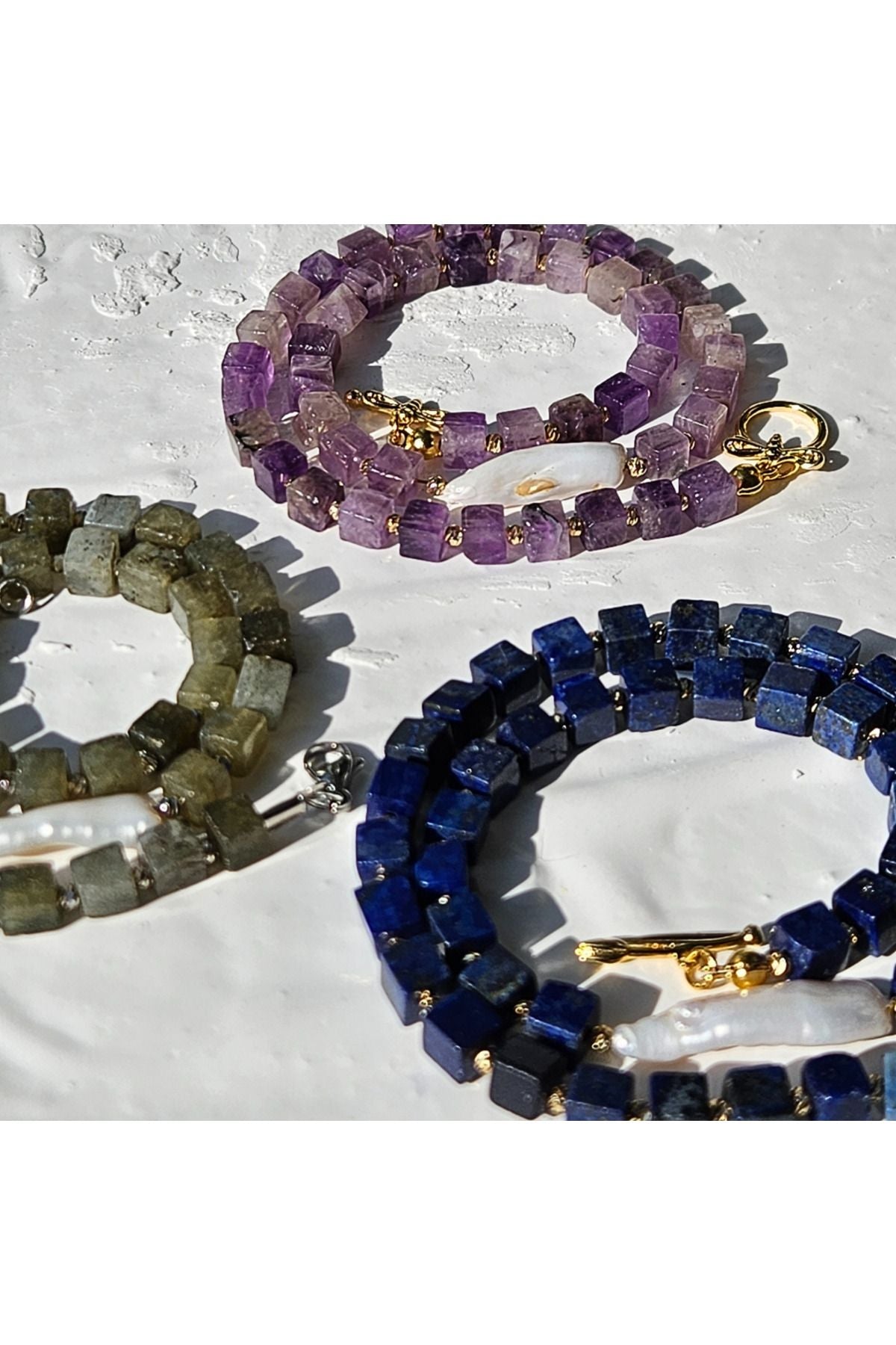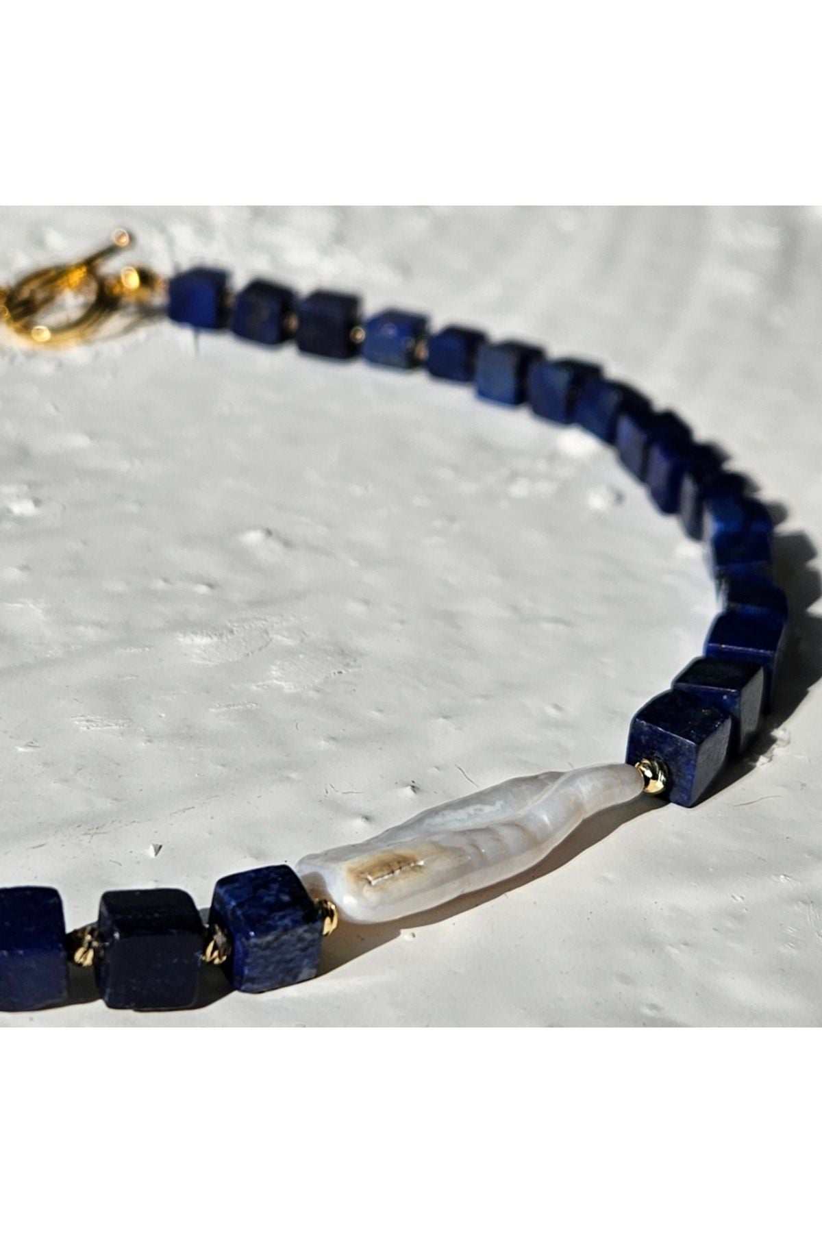 CalaisMarine Necklace Lapis Lazuli Doğal Taşlı Barok İncili Kolye