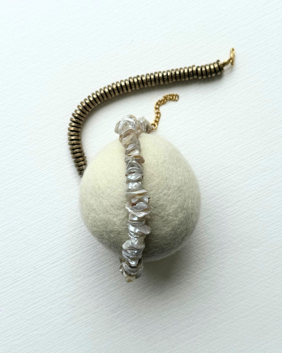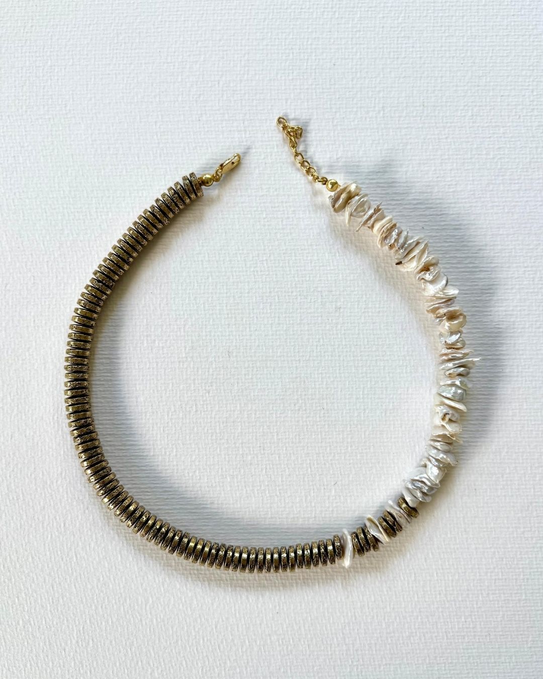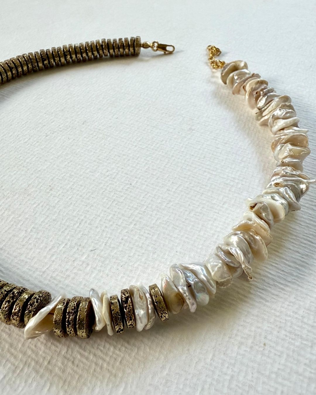 Calme Doğal Lav Taşlı Barok ve Yaprak İncili Kolye