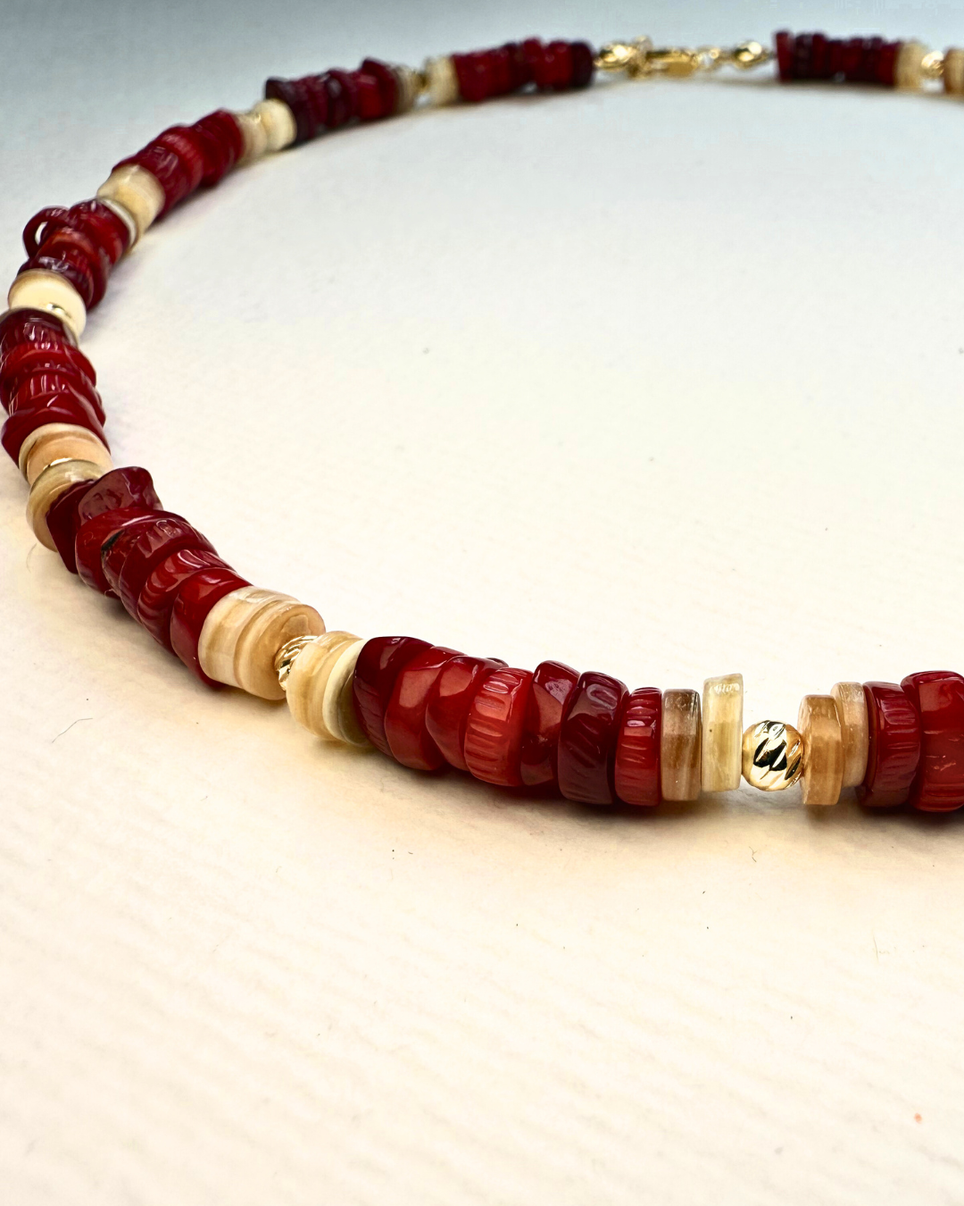 CorailDeux Doğal Mercan ve Sedef Taşlı Kolye