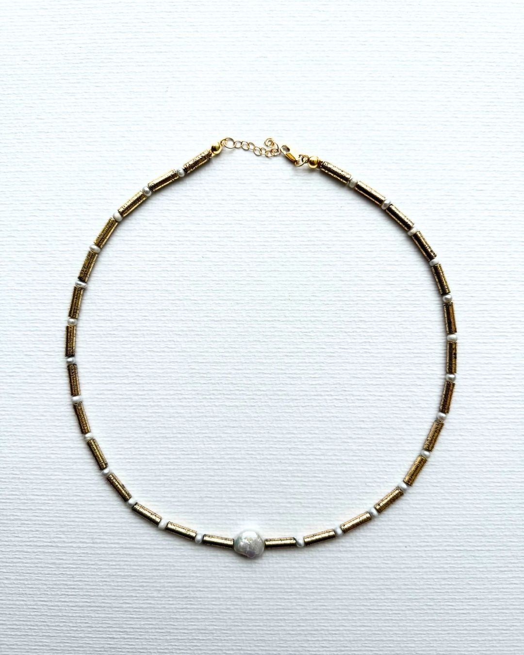 Gleam Doğal Lav Taşlı Barok İncili Kolye