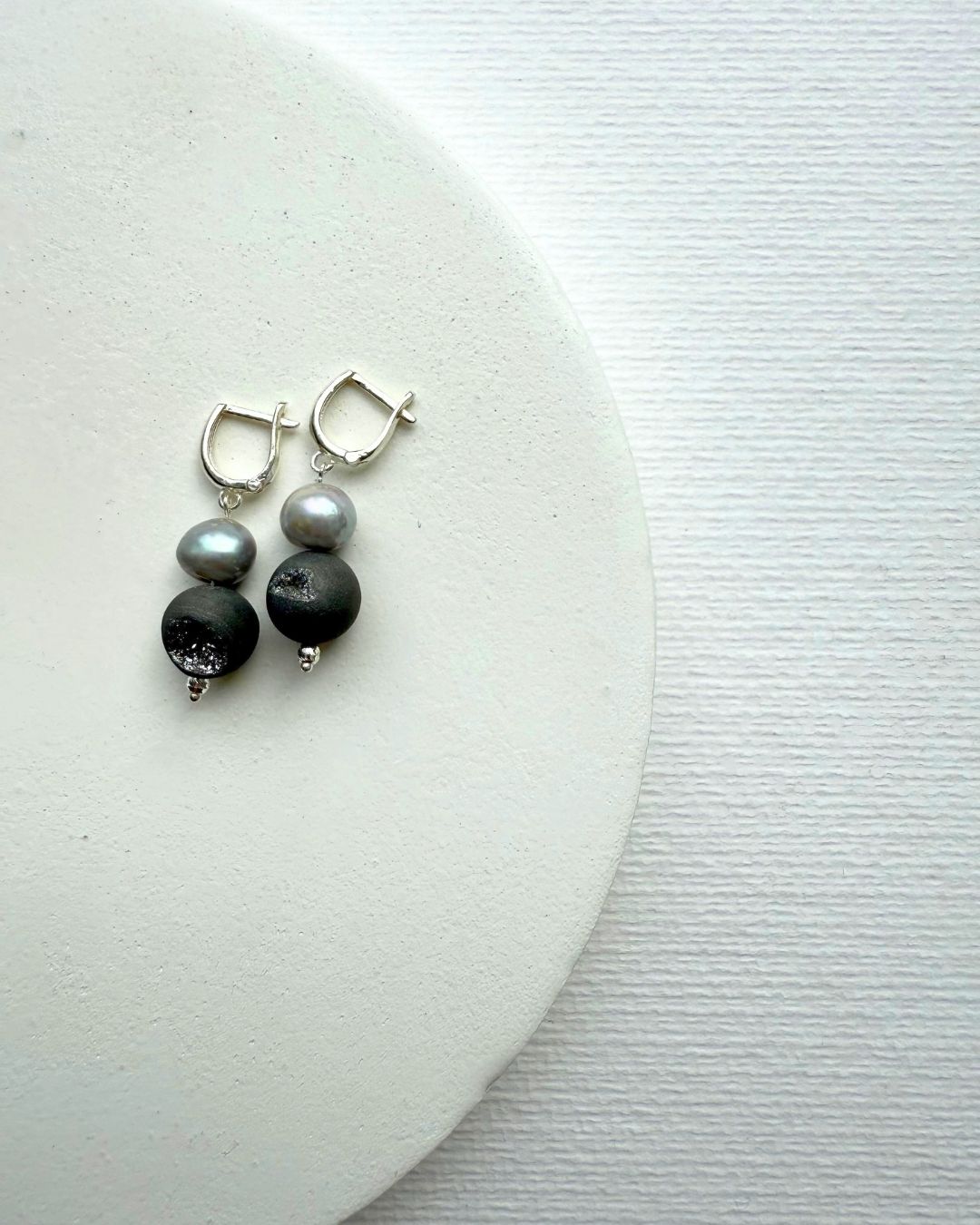 Fate Barok İncili ve Druzy Akik Taşlı Gümüş Küpe