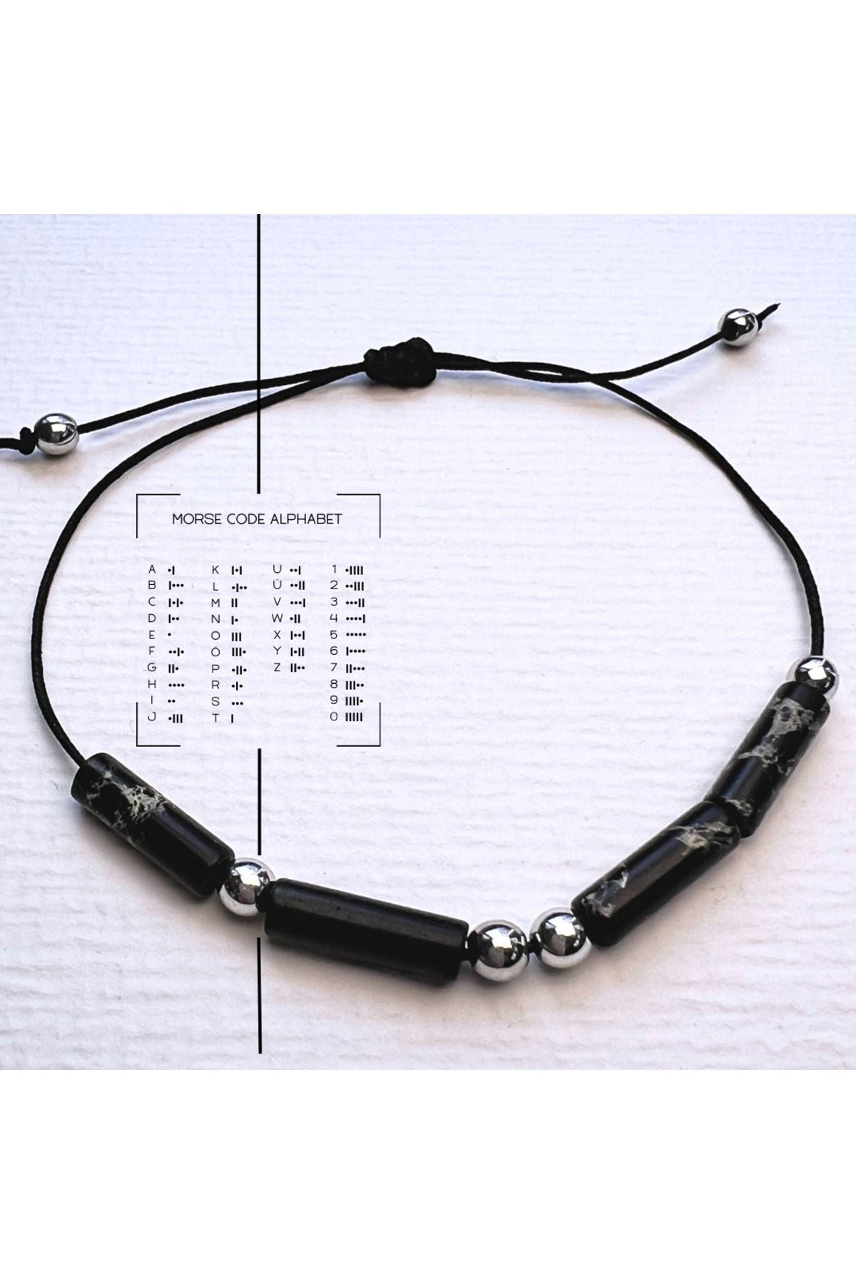 Messages Cachés Doğal Hematit ve Varasit Kişiselleştirilebilir Mors Alfabesi Bileklik