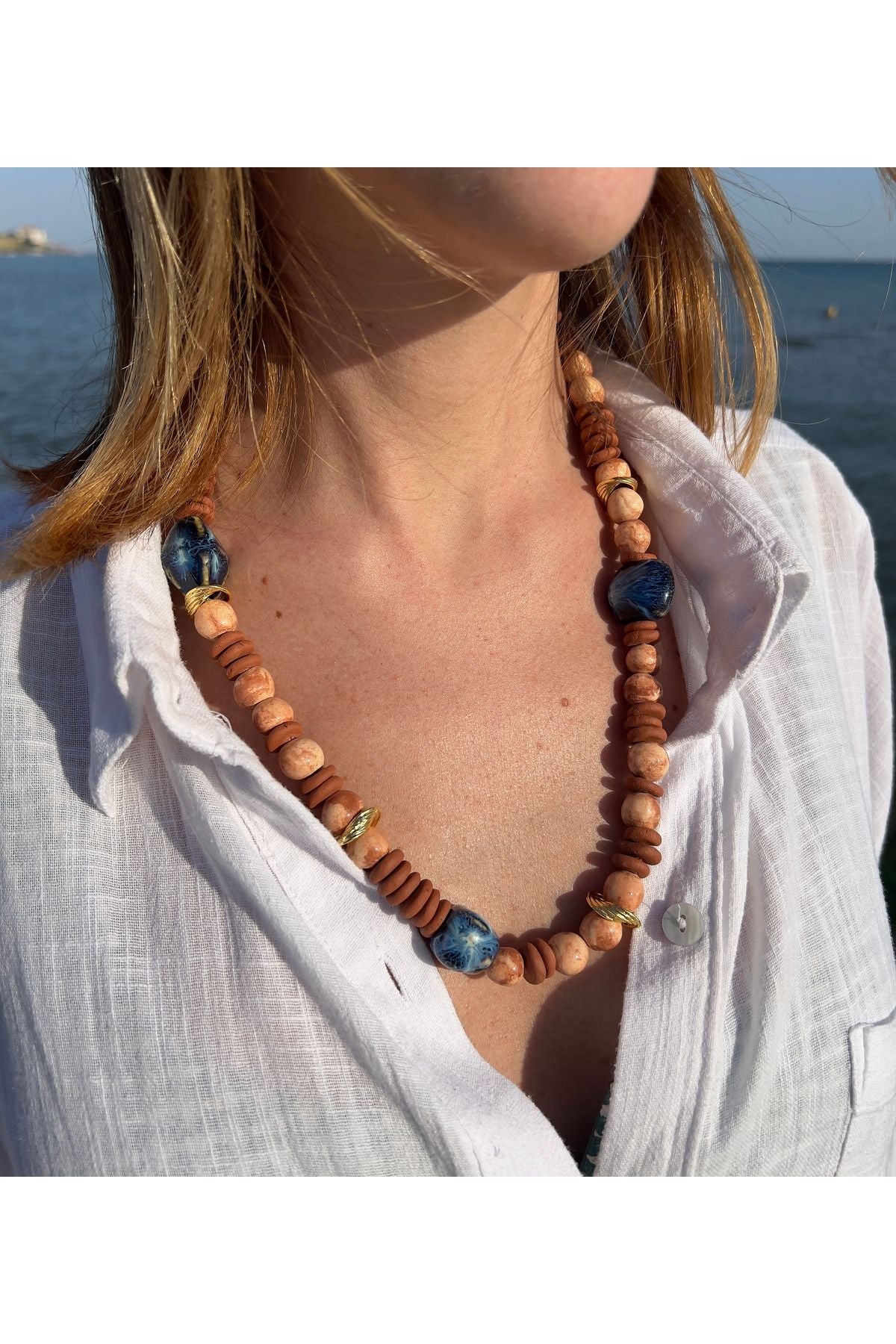 Montreuil El Yapımı Toprak ve Seramik Boncuklu Kolye