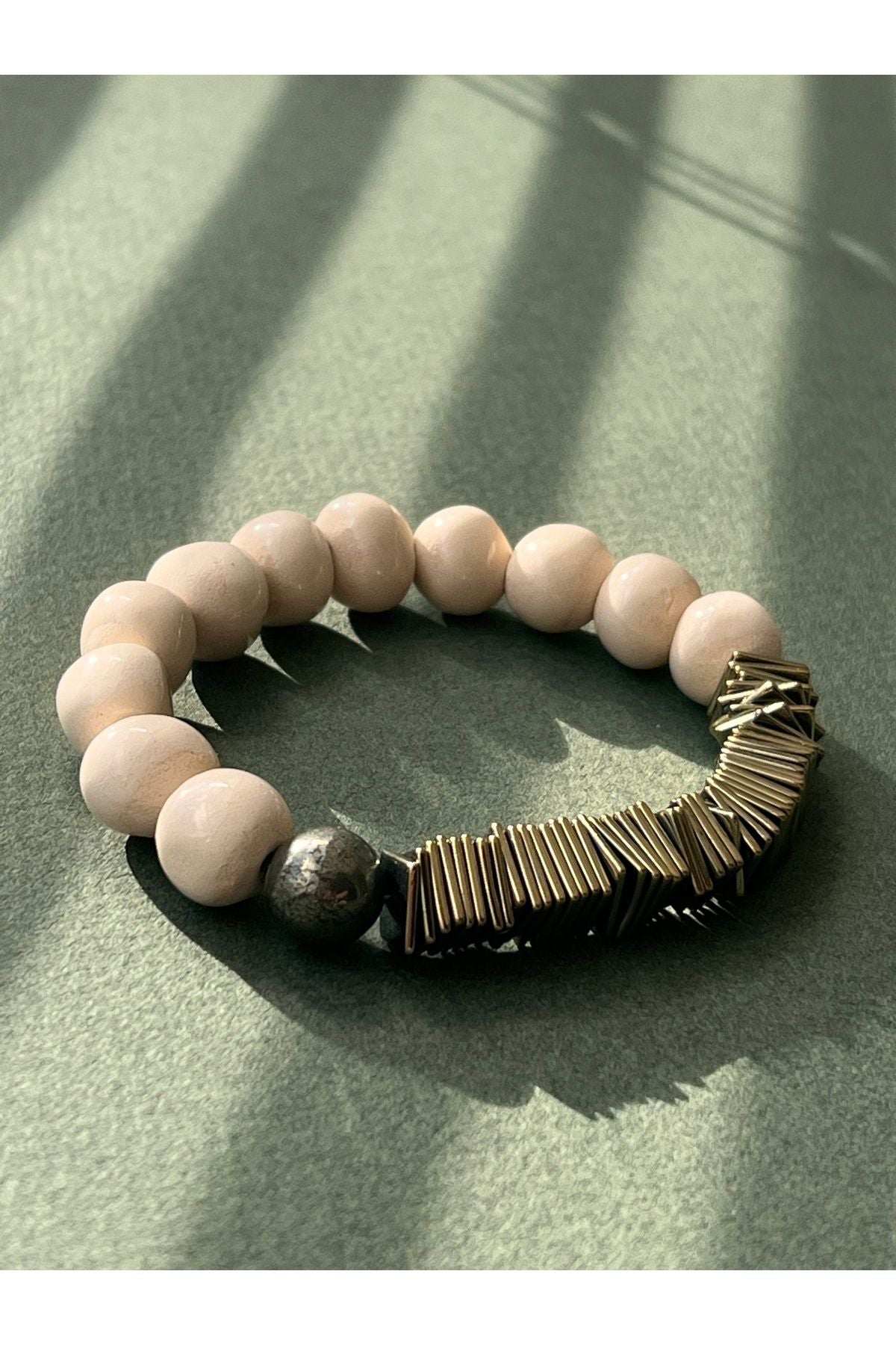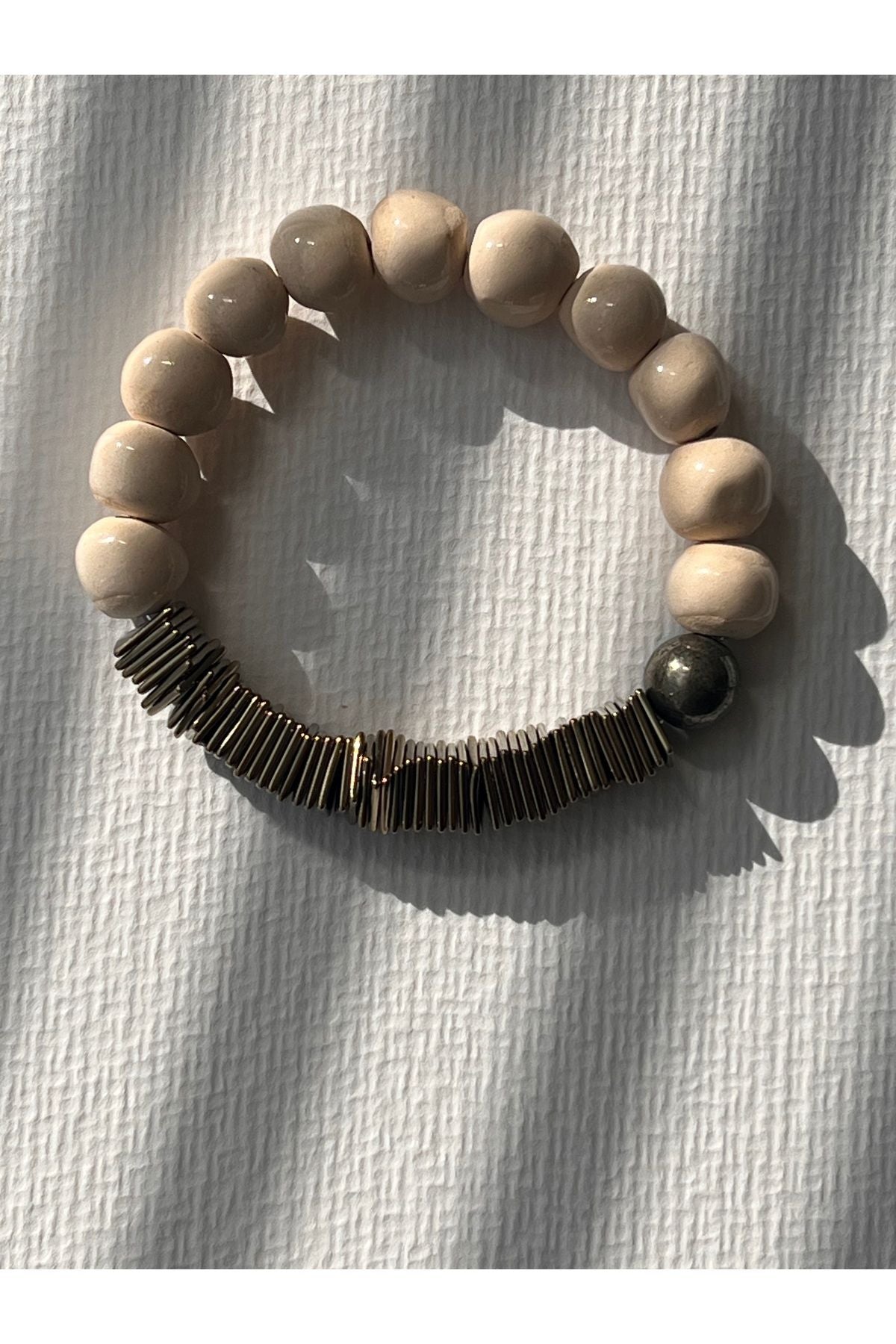 Mystere Doğal Hematit Taşlı ve Toprak Boncuklu Bileklik