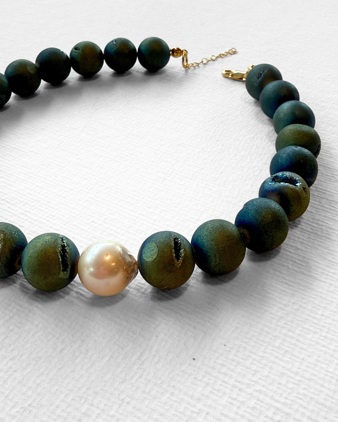Nuage Druzy Akik Taşlı ve Barok İncili Kolye