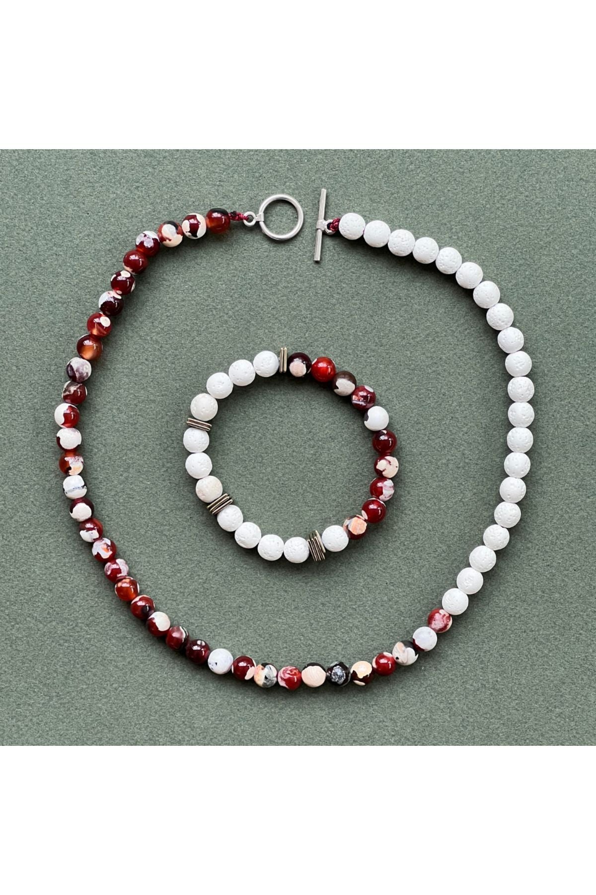Serenite Doğal Lav Taşı ve Akik Taşlı Bileklik