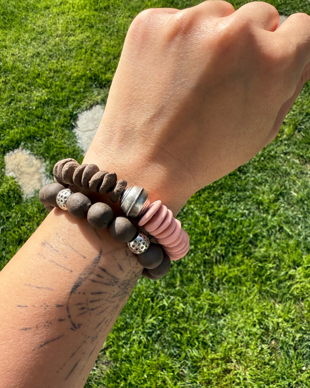 - Tasarımda kil toprağın fırında pişirilmesi ile elde edilmiş olan toprak boncuklar kullanılmıştır.