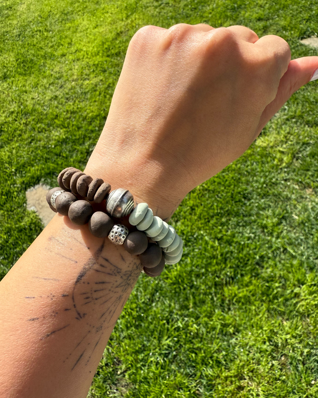 - Tasarımda kil toprağın fırında pişirilmesi ile elde edilmiş olan toprak boncuklar kullanılmıştır.